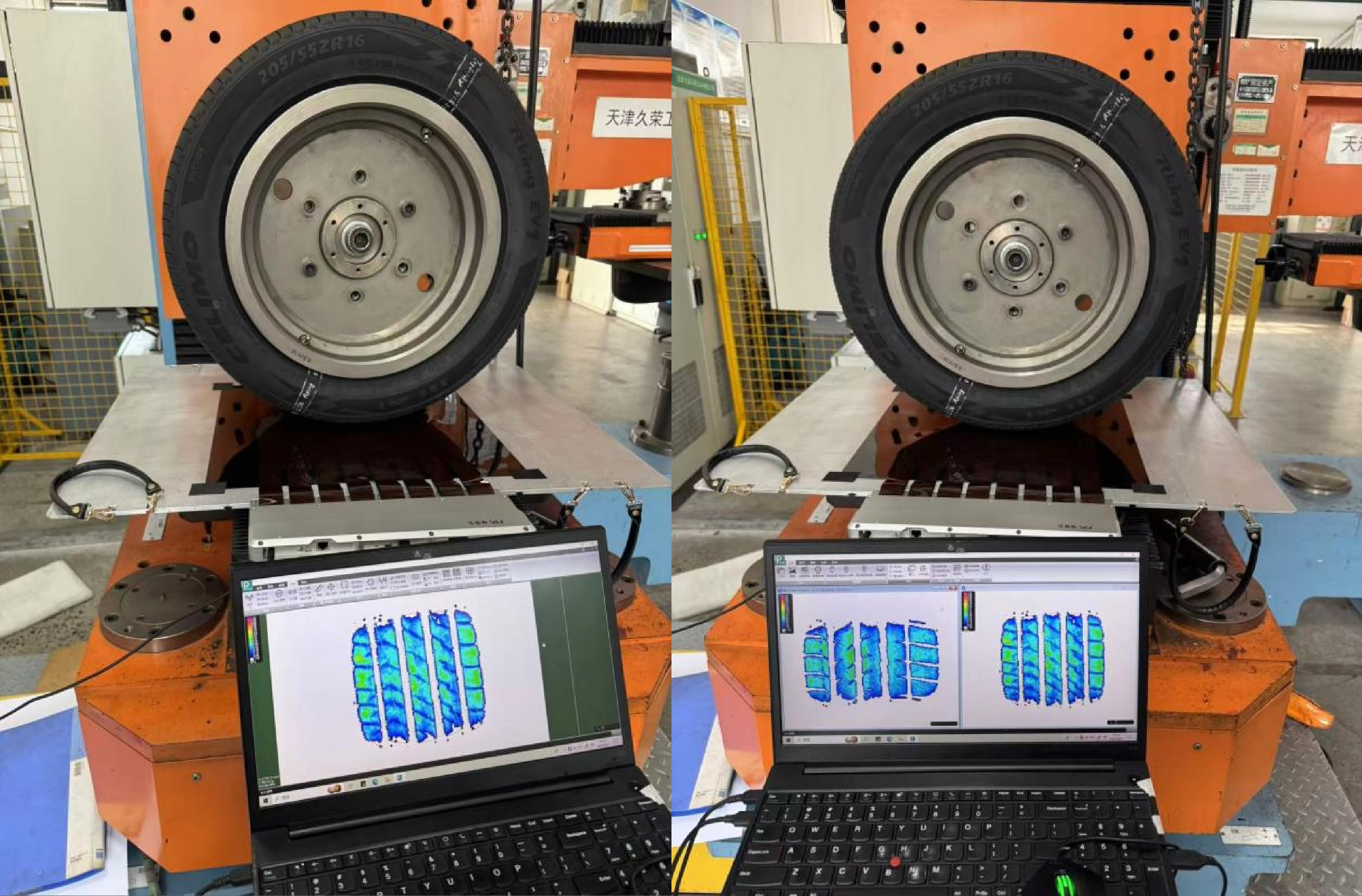 通过定制化铝板安装FPS8331传感器与采集器,在实验机台对轮胎中轴施加压力,精...