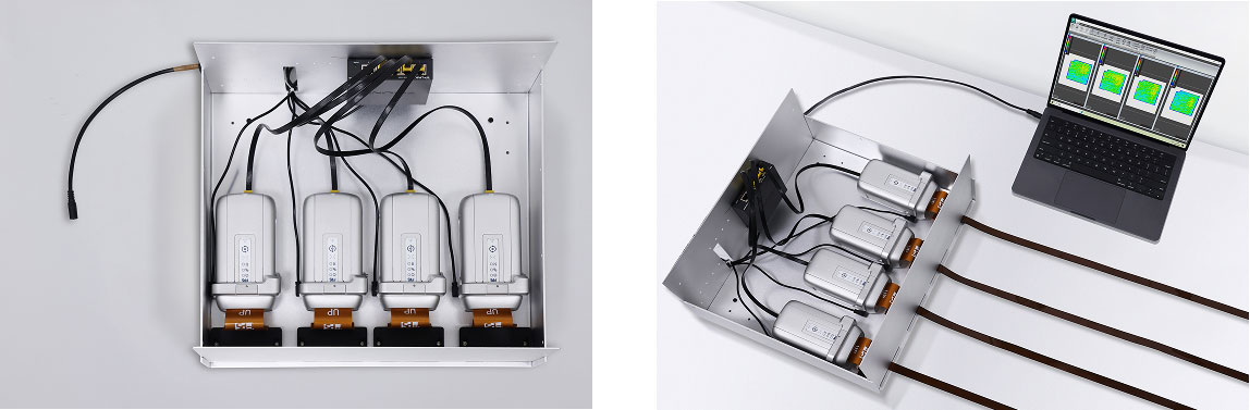 多通道压力分布测量系统是在单通道有线/无线采集系统的基础上拓展形成的多采集器同时采集、数据同时显示、存储的高效测量系统。该系统具备轮询式读取采集器中数据、压力云图实时显示、数据同时实时保存,单一界面与多界面拼合自由切换等多项功能,满足用户多角度、大面积测量等需求。